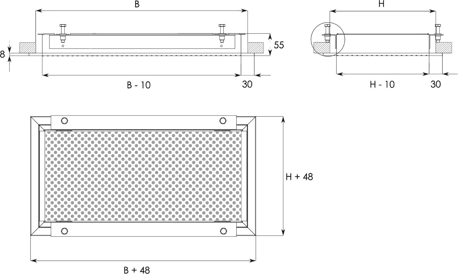 Perforirana revizijska rešetka je namenjena odvodu zraka iz prostora ali dovodu zraka v prostor. Primerna je za vgradnjo v spuščene strope. Klik ali ključavnica mehanizem omogočata enostavno odpiranje in dostop do med stropovja.