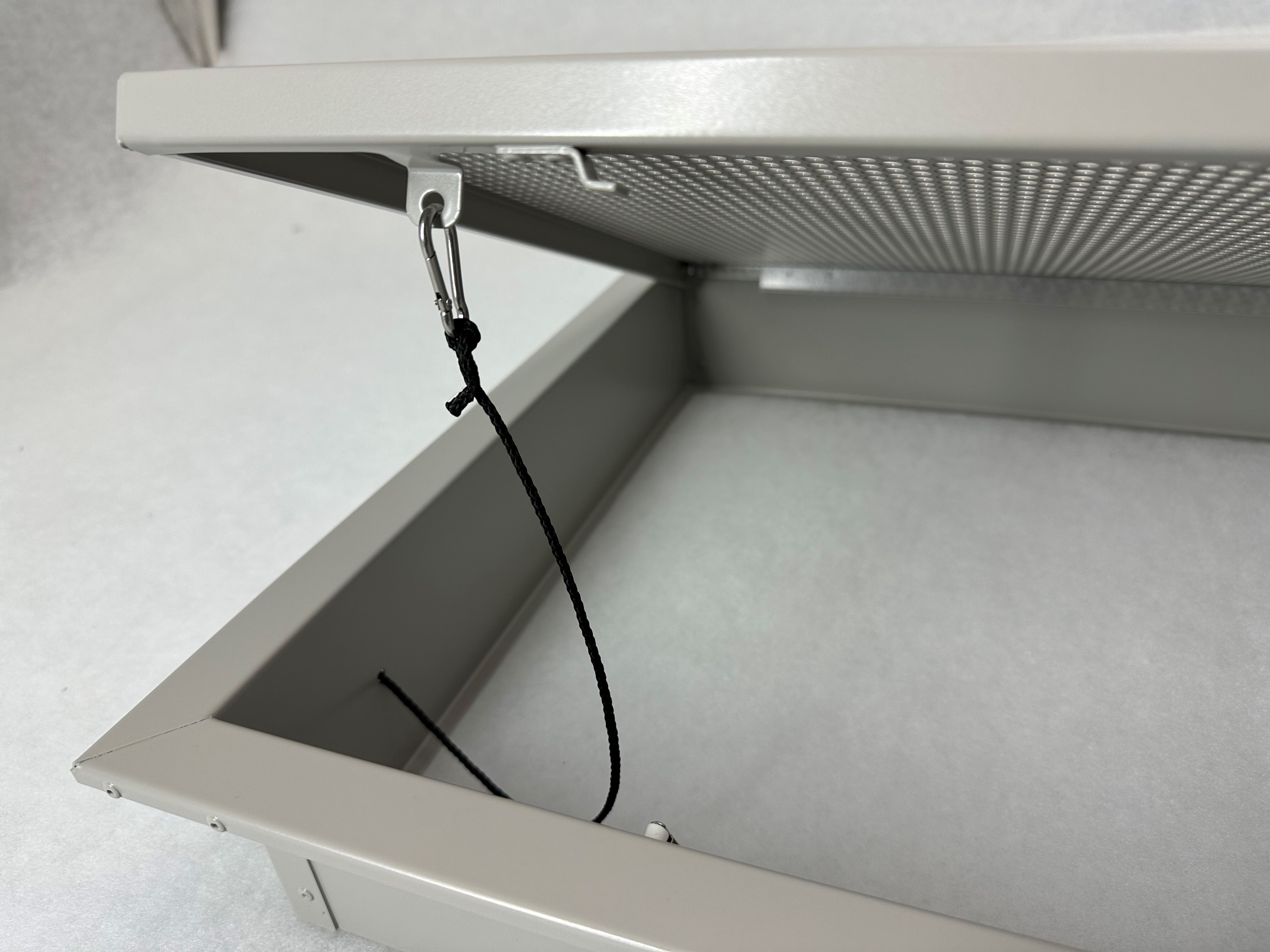Rešetka se odpre okoli osi po daljši stranici.